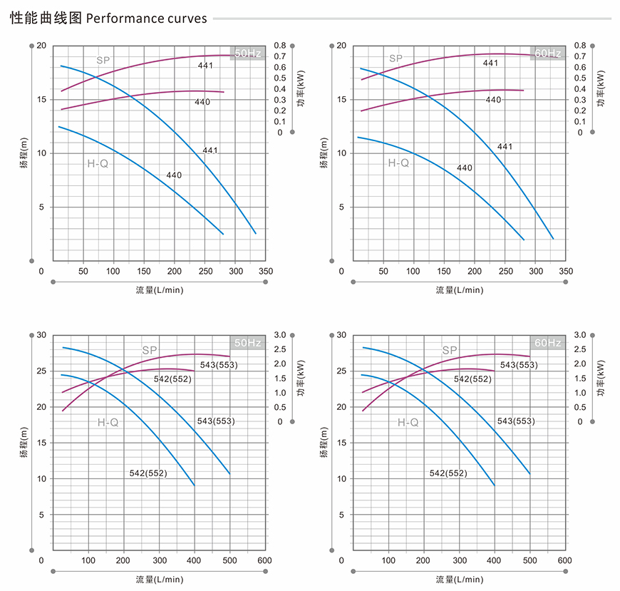 性能曲線表:
